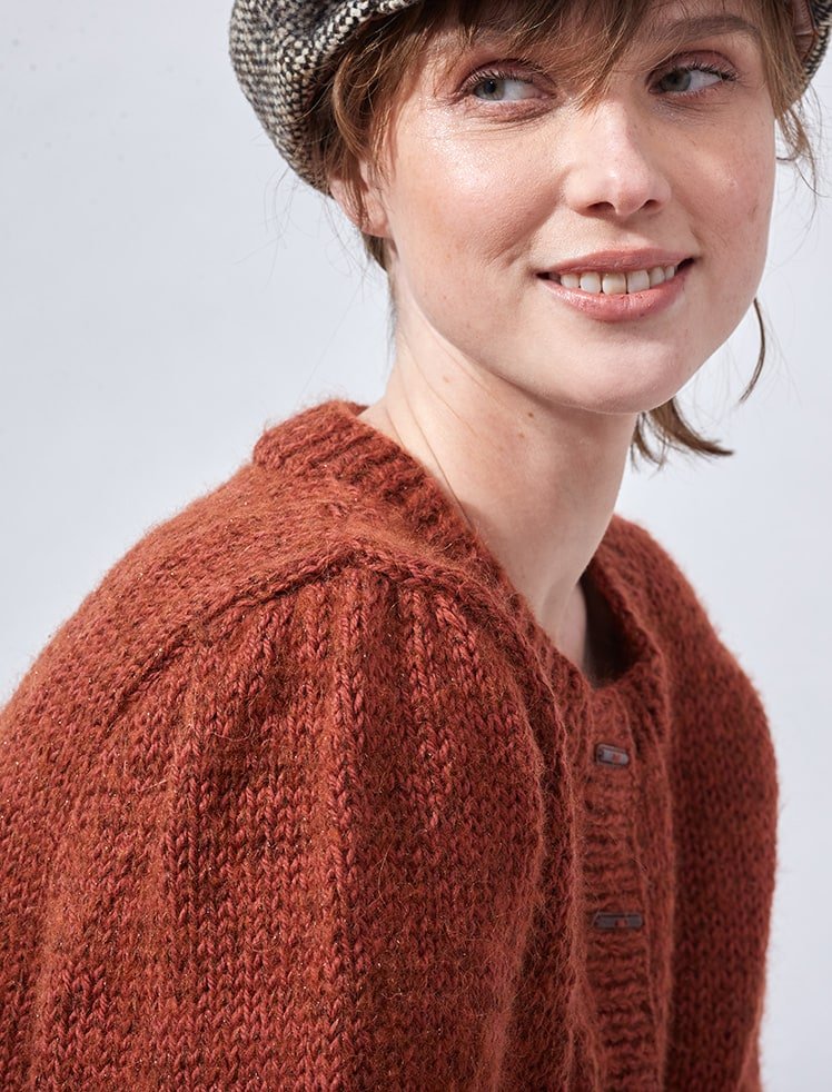 - 195/20 Modèle Cardigan à manches ballon en Plassard Merilana et Evanescent