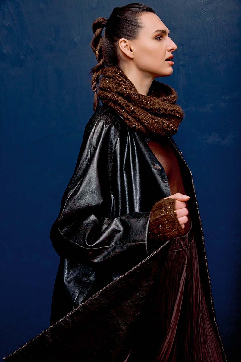 Lang Yarns Baby Lama : 2 pelotes coloris Choco 1170.0067 et Lang Yarns Paillettes : 2 pelotes coloris Marron/Or 39.0068