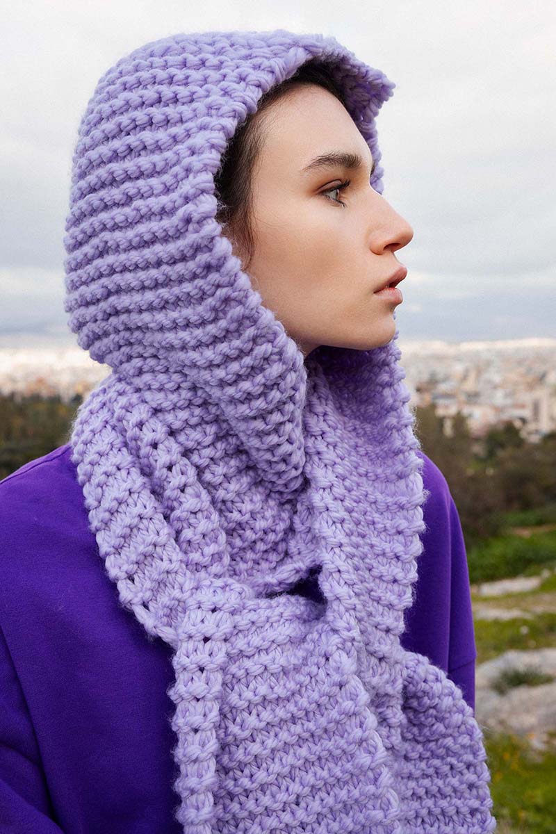 287-03 Modèle Celestial Écharpe à capuche en Wool Addicts by Lang Yarns Fire