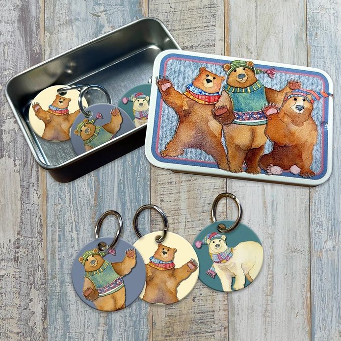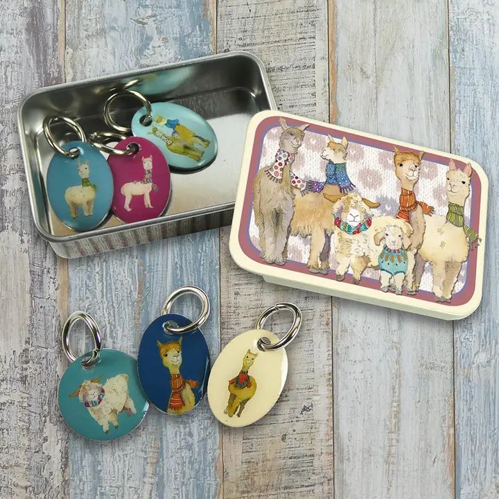Six marqueurs de 2 cm chacun sont imprimés sur de l'aluminium et vernis.