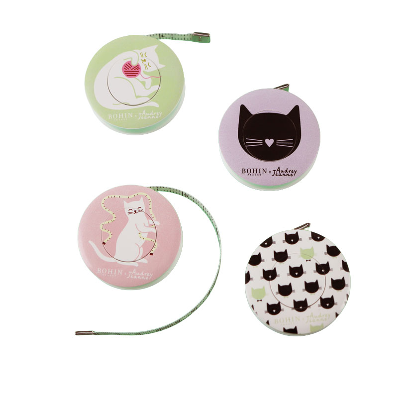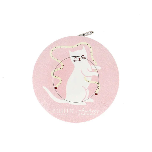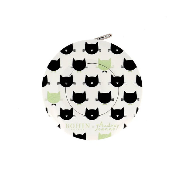Ces centimètres enrouleur font partie de la collection exclusive Bohin x Audrey Jeanne, une collaboration qui associe le savoir‑faire de la mercerie française Bohin à l’univers délicat et moderne de l’illustratrice Audrey Jeanne. Les motifs de chats espiègles et apaisants rendent cet outil unique et facilement identifiable dans votre espace de travail.