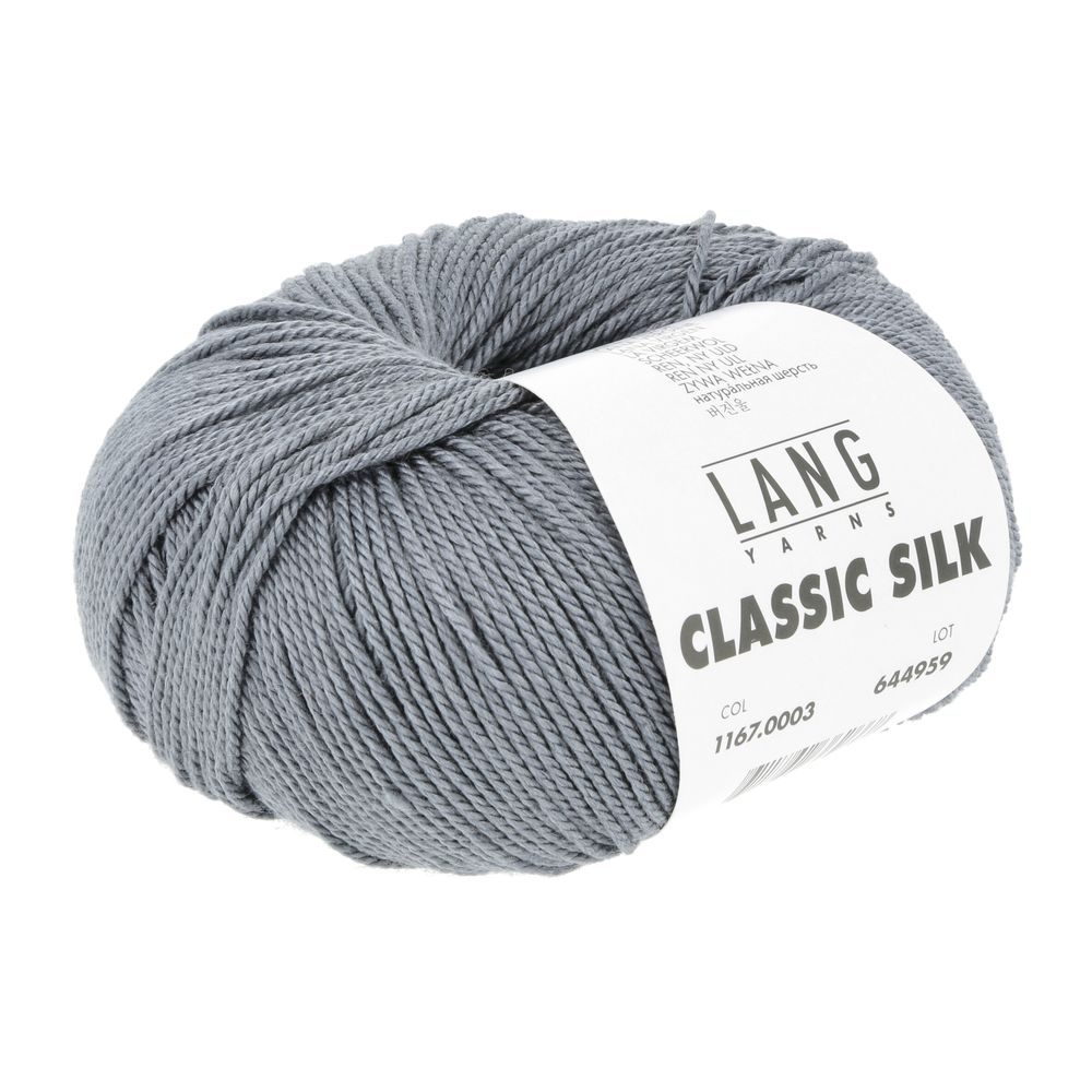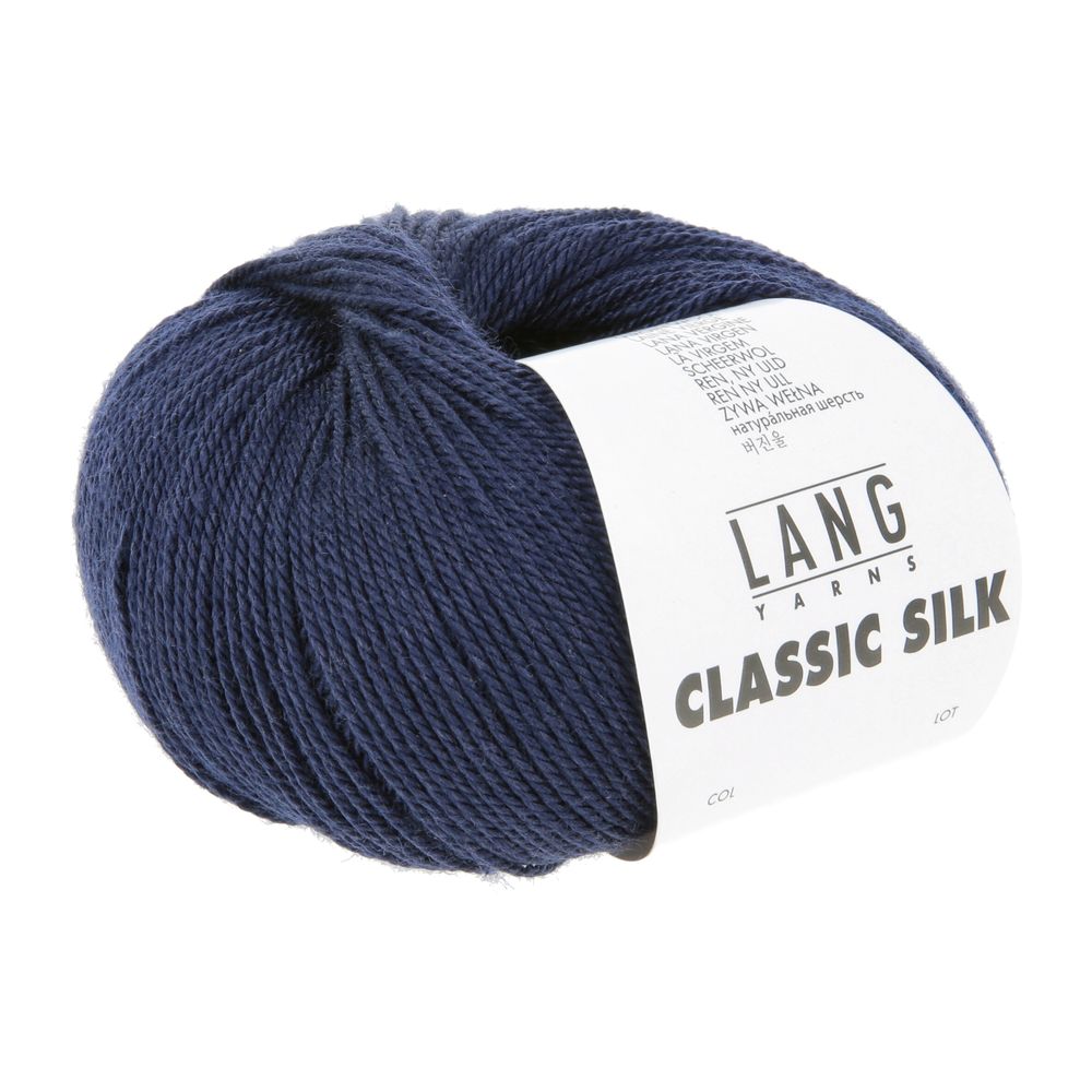 Le nom du fil est déjà tout un programme : Lang Yarns Classic Silk est un fil 3 brins de soie fine traditionnel. Le retors donne au fil une coupe transversale bien ronde qui, de façon optimale, met en valeur les points de dentelle filigranes, les textures précises et d'impressionnants points de torsade. Et avec sa part de 30% de laine de mérinos, le fil accroche un peu plus que du 100% soie.