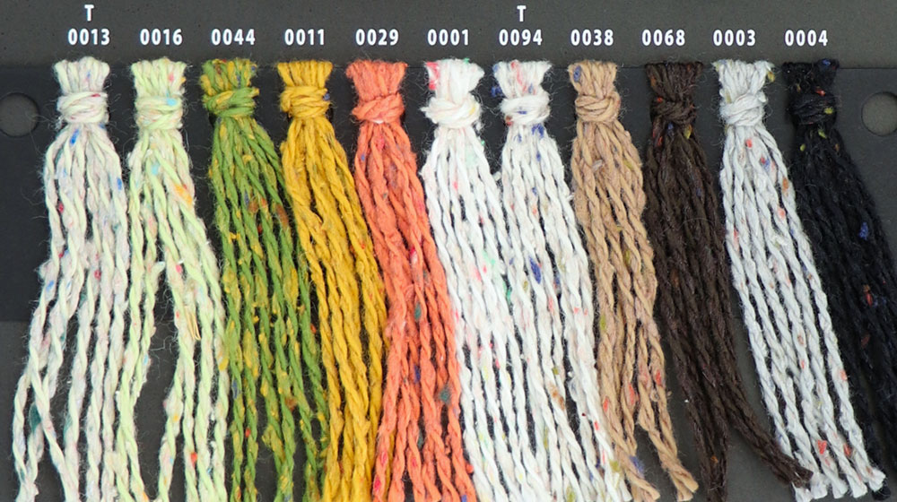 un fil agrémenté de noppes de tweed colorées en soie