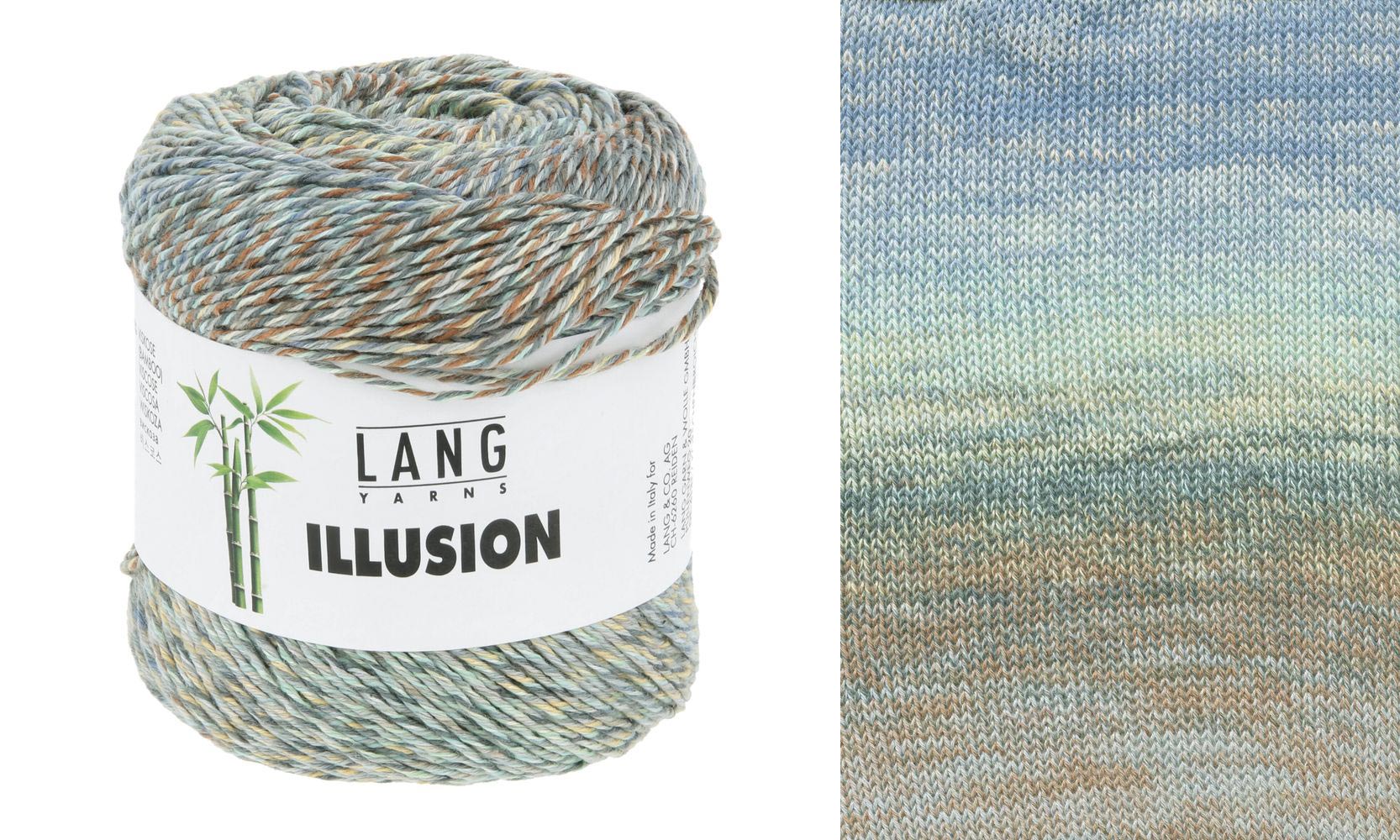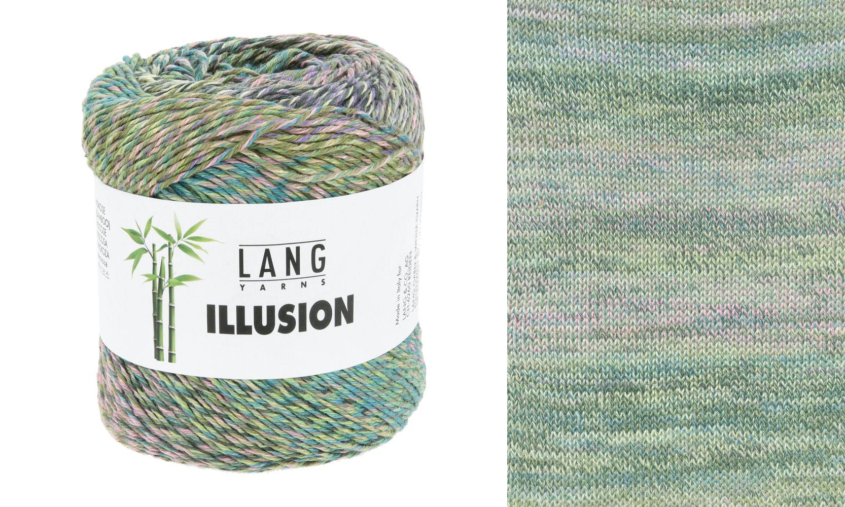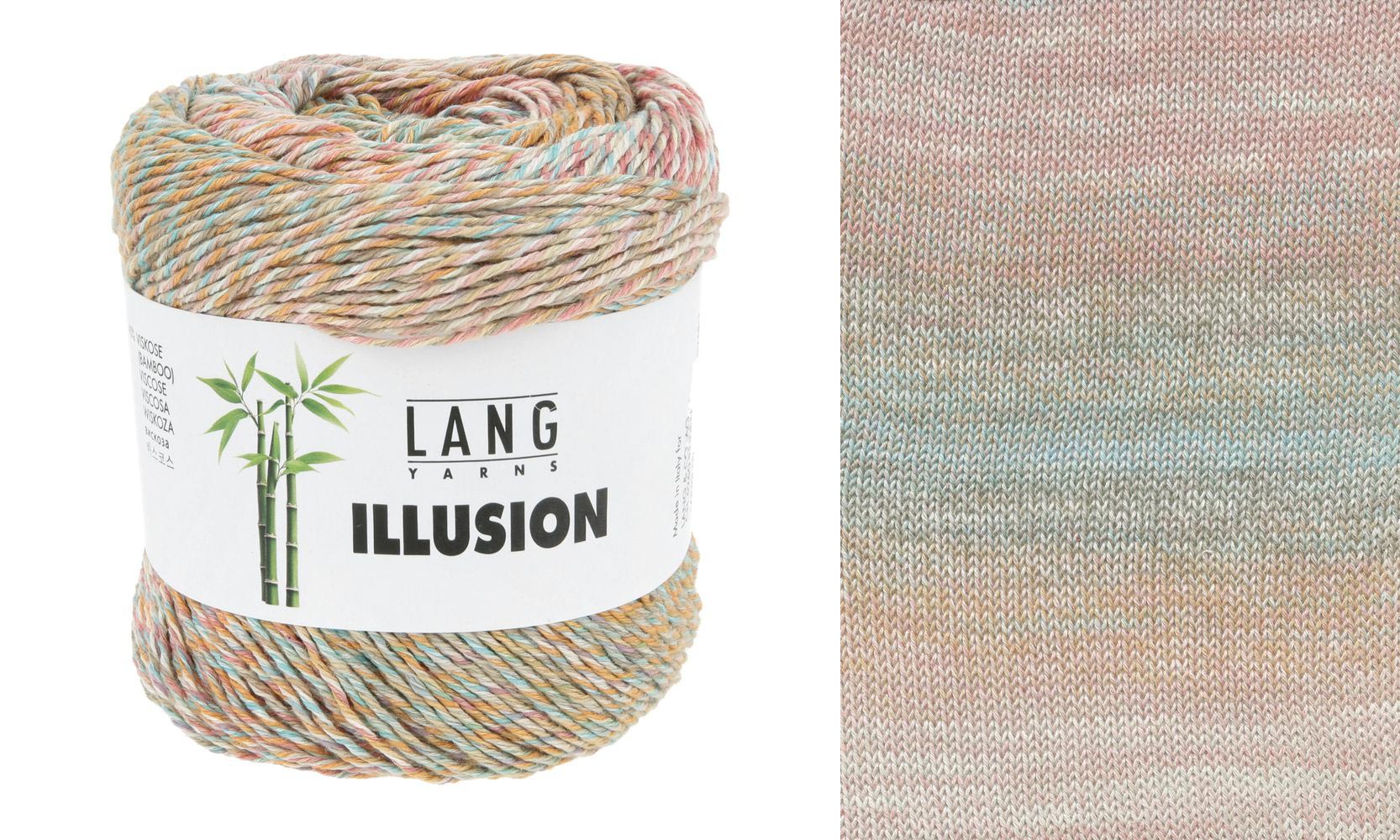 Lang Yarns Illusion, un mélange de coton et de viscose de bambou, se distingue par ses nuances uniques. Chaque fil est imprimé individuellement avec le même dégradé de couleur avant d'être retordu, ce qui permet d'obtenir des combinaisons de couleurs constamment changeantes dans la pelote.