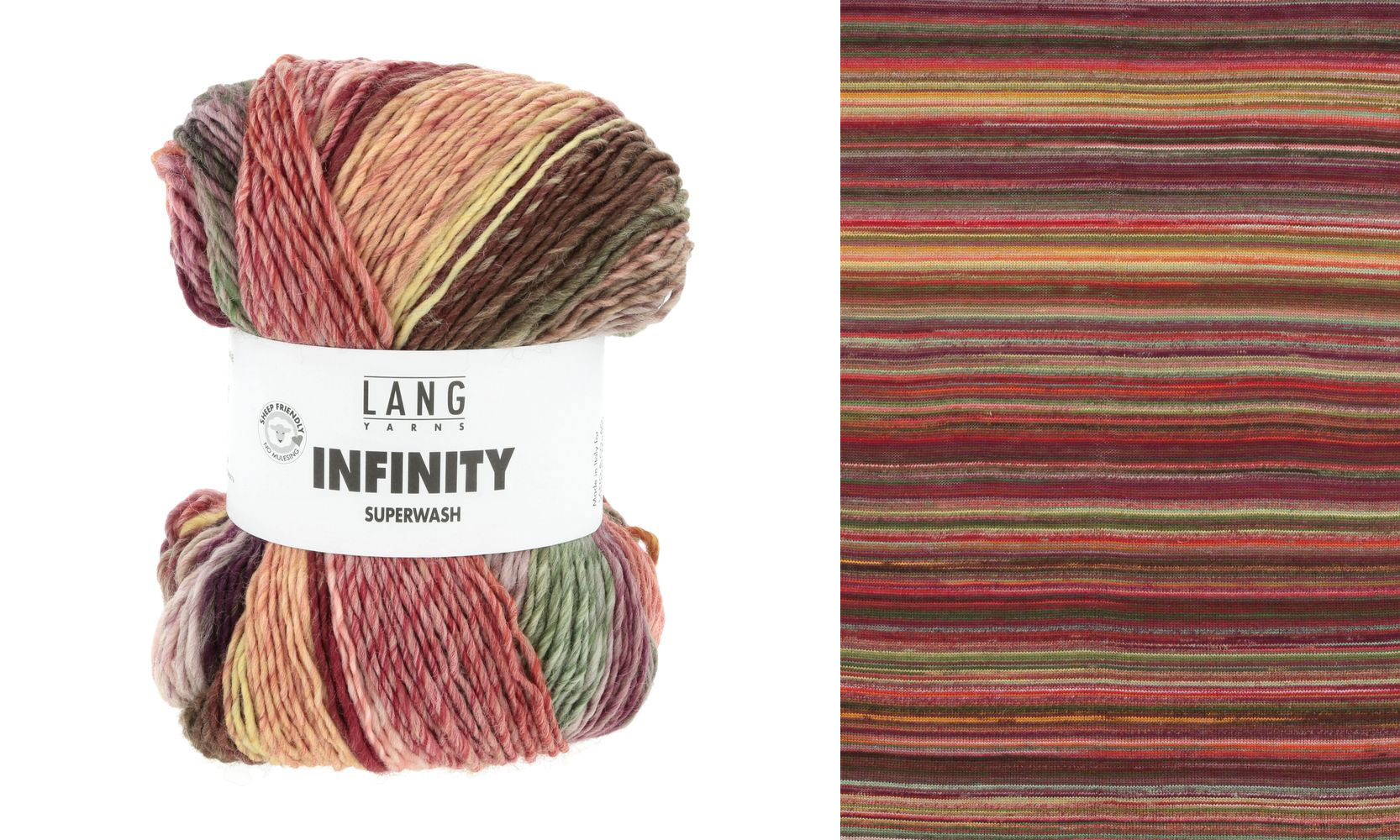 Lang Yarns Infinity est un fil mèche en mérinos extrafin qui séduit par son jeu de couleurs unique. Chaque pelote est conçue de façon à ne pas avoir de motif qui se répète - ce sont certes toujours les mêmes couleurs qui sont utilisées mais à un rythme irrégulier, à des intensités et dans des ordres différents.