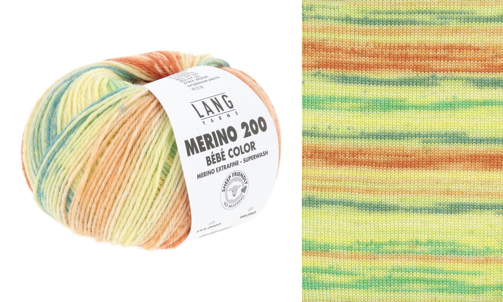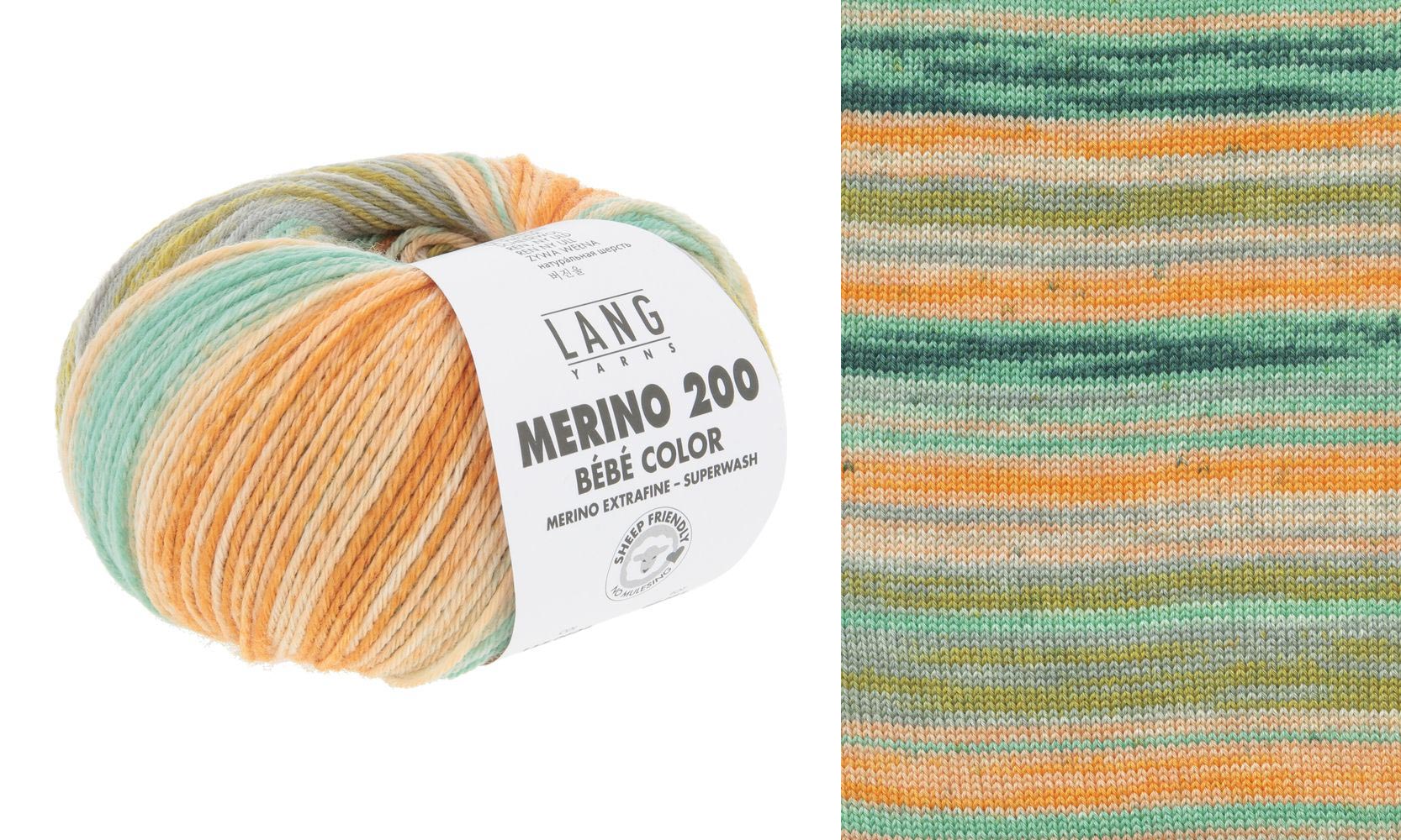 Lang Yarns Merino 200 Bebe Color - Pelote de 50 gr - Coloris 0604 Pétrole/Turquoise/Citrouille