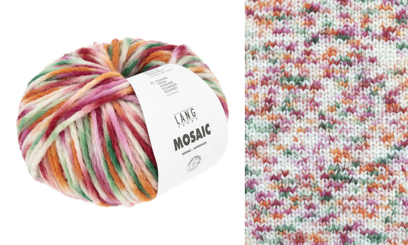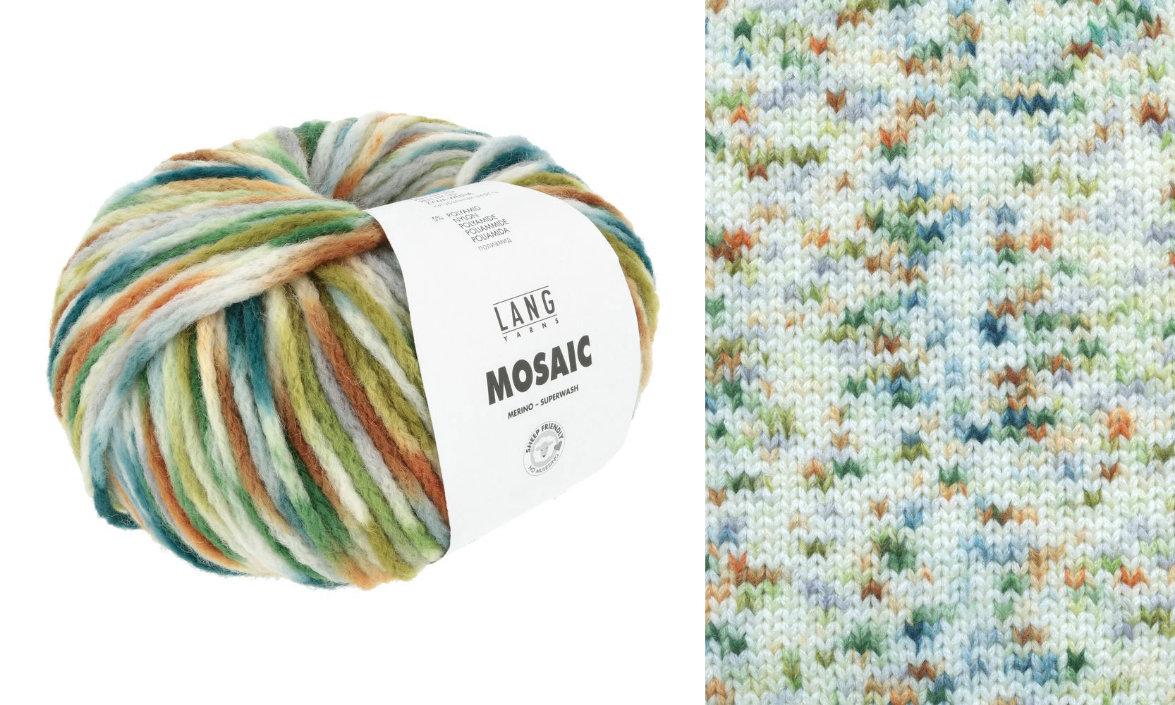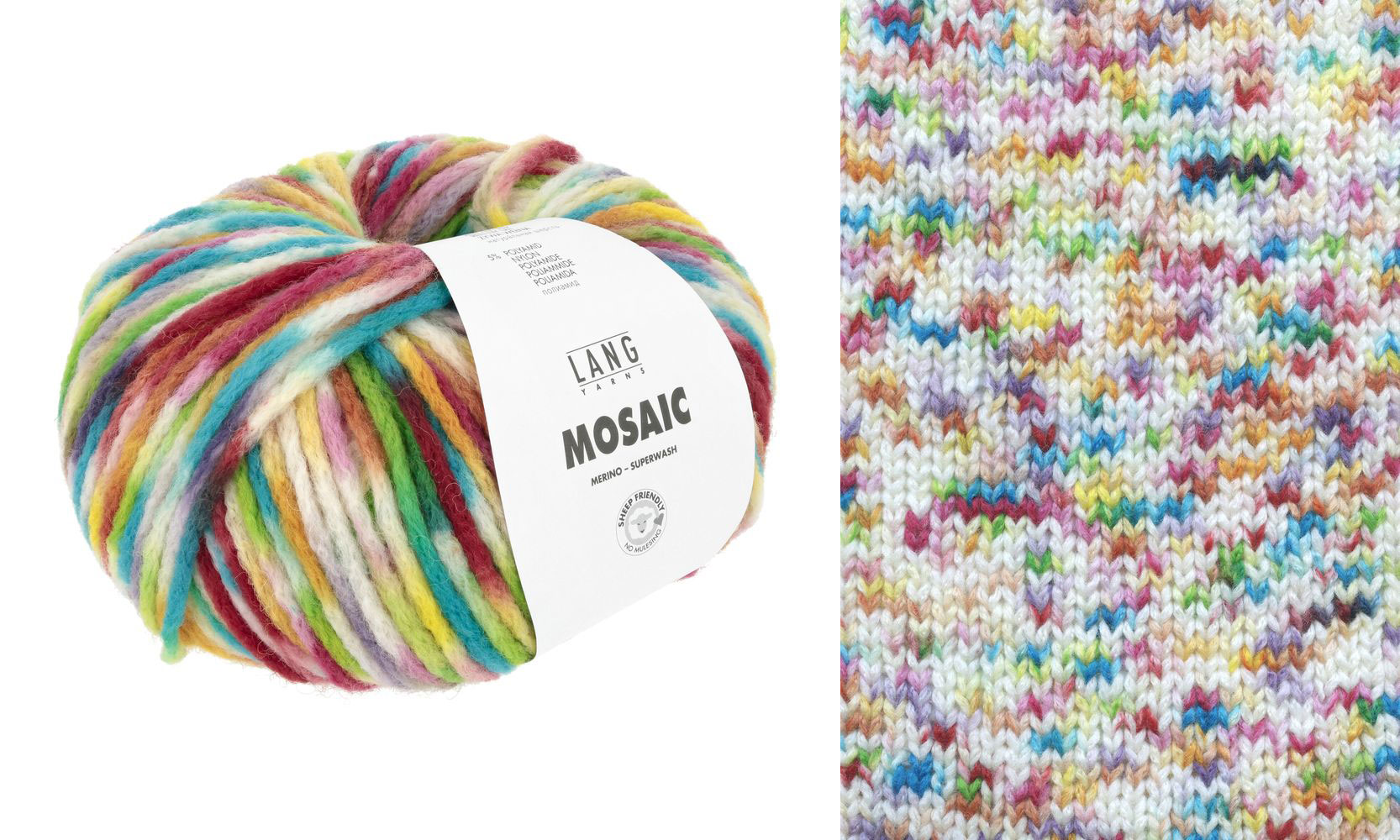 Avec ses tonalités de base blanches et les petits accents vifs de couleurs, Lang Yarns Mosaic enchantera non seulement les tricoteuses qui aiment la couleur que celles qui préfèrent les tons sobres.