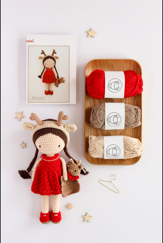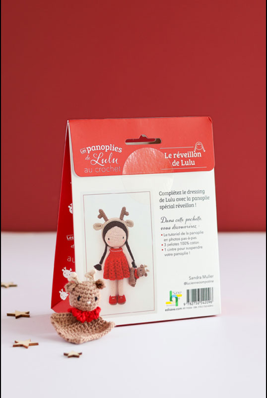 Ce kit crochet fait partie de la collection "Poupée Lulu & ses panoplies" et vous permet de confectionner une tenue festive et des accessoires adorables pour célébrer Noël avec style.