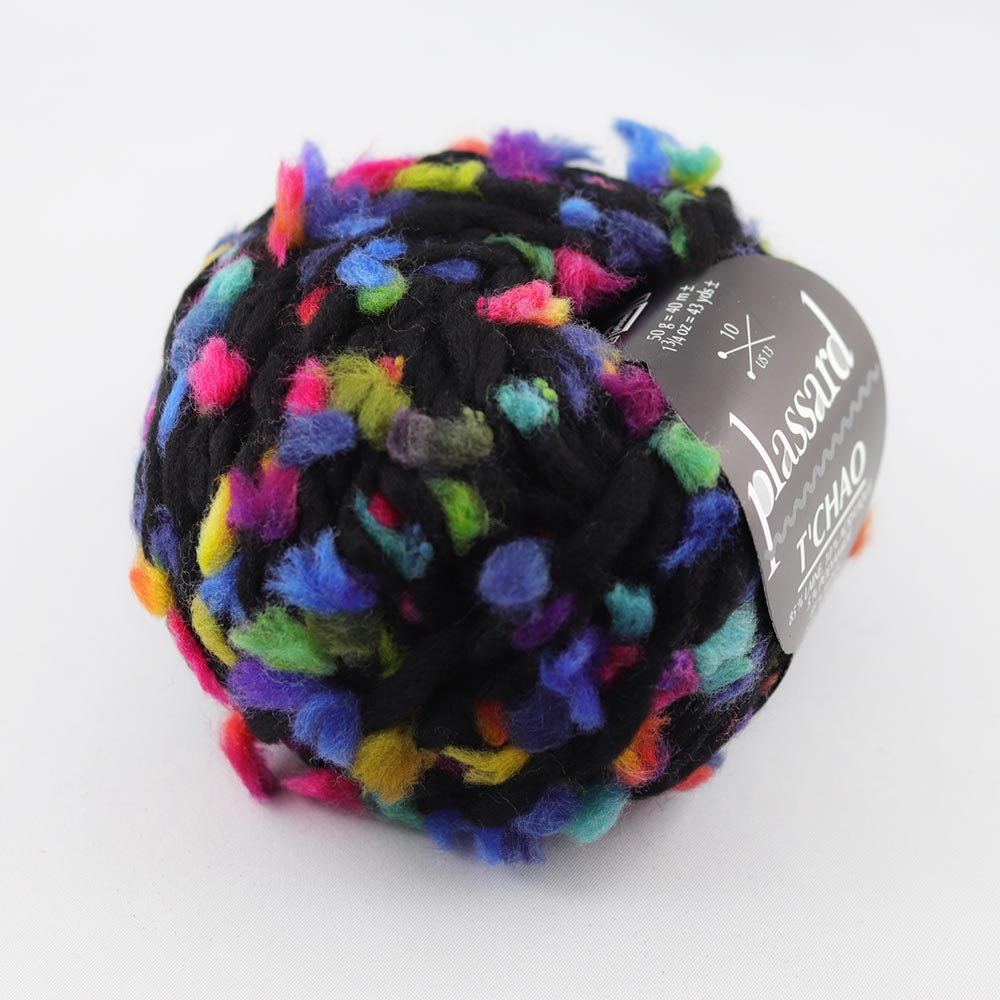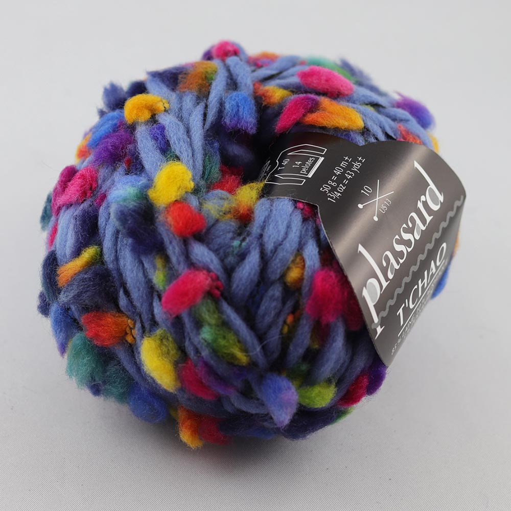 | Pour l'achat d'au moins 2 pelotes de Plassard T'Chao, la fiche pdf du modèle Jeu de mailles Tour de cou multicolore est offerte | |