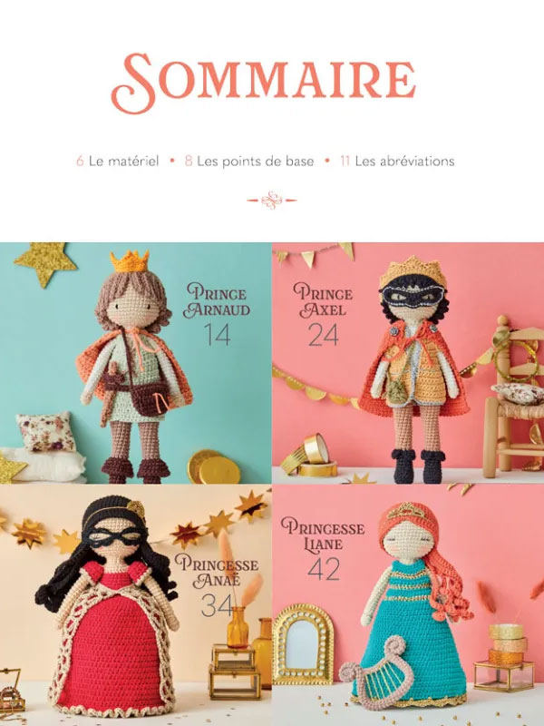 Auteur : Valérie Formentin Editeur : Editions de saxe Nombre de pages : 112 Parution : mars 2025 Les commentaires de l'éditeur : Connue sur Instagram sous le nom @lescontesdevaly, Valérie Formentin vous invite à réaliser au crochet 10 princes et princesses aux couleurs chatoyantes ainsi que leurs accessoires. Grâce aux instructions et aux tutos photos fournis, vous prendrez un réel plaisir à créer chaque poupée au crochet issue de cet univers fantastique. Prêt(e) à inventer des histoires féeriques aimées des petits et des grands ? Taille des poupées : entre 20 et 25 cm de hauteur environ Au fil des 112 pages de son premier livre, Valérie vous propose 10 modèles de poupées au crochet provenant de son imaginaire débordant et inspirés par son thème de prédilection : les contes de fées. Vous allez craquer pour ces personnages rehaussés d’or et d’argent accompagnés de leurs accessoires personnalisés : Ce livre crochet s’adresse à tous les passionnés maîtrisant parfaitement cet art du fil. En effet, vous y trouverez des modèles avec 2 niveaux de difficulté : intermédiaire et avancé. Mais pour faciliter la réalisation de chaque poupée en crochet, l’auteure vous offre : Descriptif