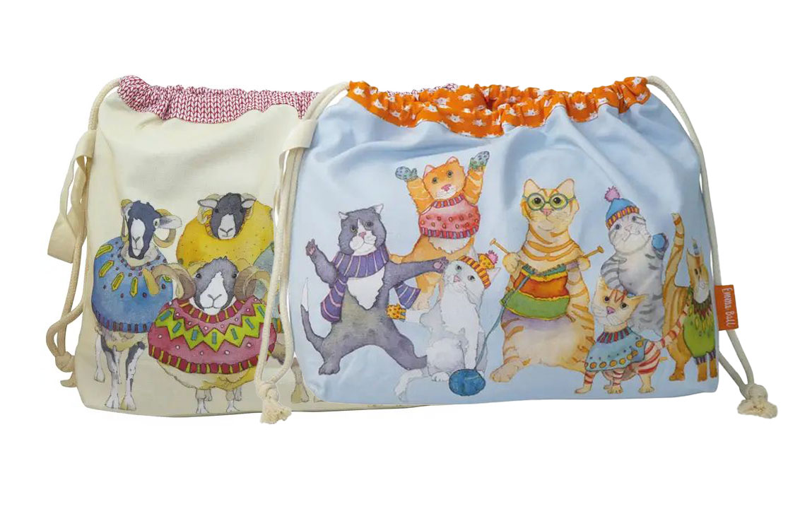 Fabriqués en coton et mesurant 39 cm (L) x 31 cm (H), ces sacs sont dotés d'un cordon de serrage avec une boucle de suspension.